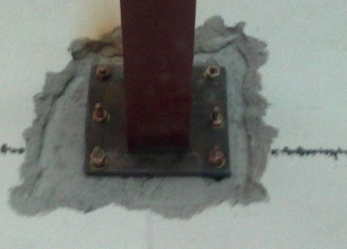 工字鋼焊接對著預埋鋼板中間焊接,鋼結構閣樓受力點基本上在螺栓上面,螺栓在條件地方最好用化學錨栓固定